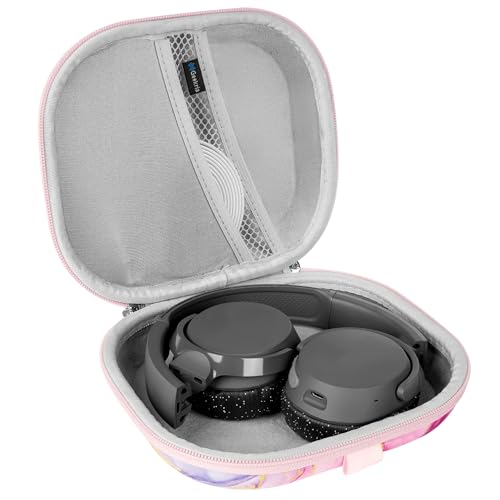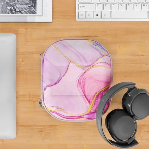 Geekria NOVA Headphones Case Compatible with Skullcandy Riff 2, Lowrider Case, Replacement Hard Shell Travel Carrying Bag with Cable Storage (Pink Marble)