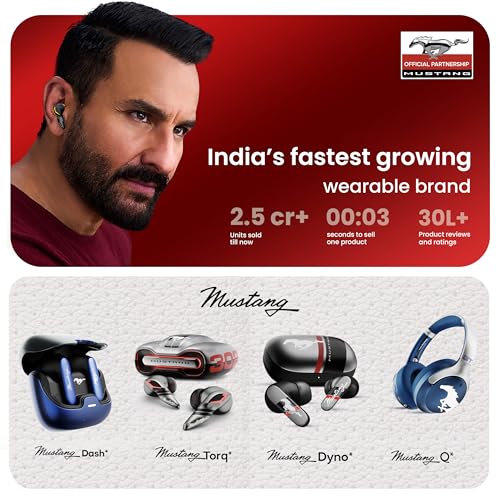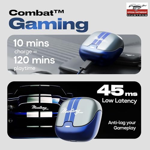 GOBOULT x Mustang Dash Truly Wireless in Ear Earbuds with 100H Playtime, App Support, Dual Device Pairing, 4 Clear Calling ENC Mics, 45ms Low Latency, IPX5 Ear Buds TWS Bluetooth 5.4