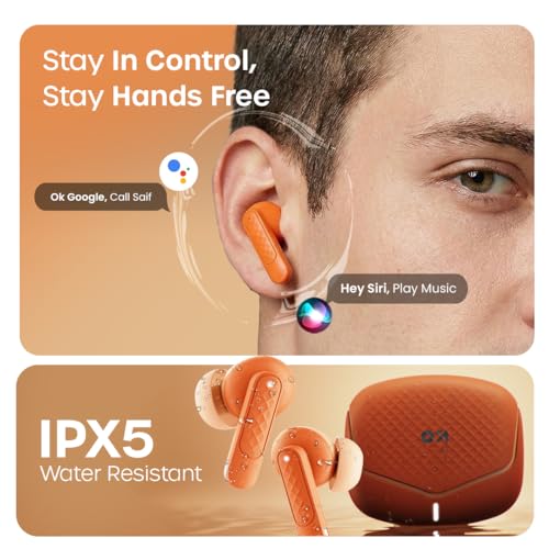 GOBOULT Z40 V2.0 with 70H Playtime, Quad Mic ENC, 45ms Low Latency, 13mm Bass, Legacy Continues, IPX5, Bluetooth 5.4, TWS Truly Wireless in Ear Earbuds (Solar Orange)