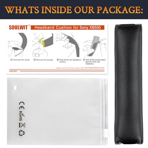 SOULWIT Replacement Headband Pad Kit for Sony MDR-XB550 (XB550 MDRXB550) Headphones, Headset Head Band Top Cushion Cover Repair Part, Easy DIY Installation – Black