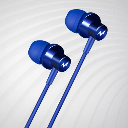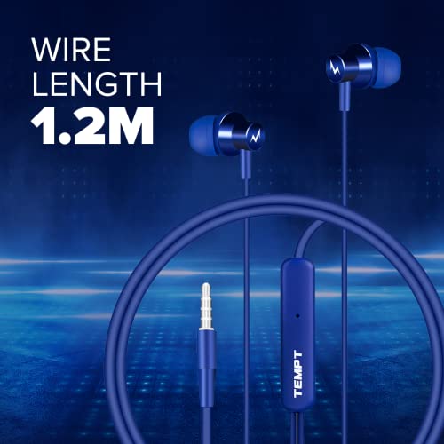 TEMPT Zap X1 in Ear Wired Earphone with Mic, 3.5mm Audio Jack, Enhanced Bass, 10mm Driver for Stereo Audio, Noise Cancelling Headphone, 1.2m Tangle-Free Cable, for Phone/Tablet/Laptop/Desktop (Blue)