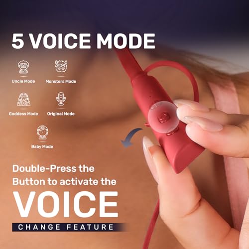 Ultra Voice Changer Neckband with 5 Voice Feature, Vibration Alert & Magnetic On/Off Buds, 130 Hrs Standby time, Dual Pairing, Fast Charging, Flexible Band with IPX6 Rating (Red)